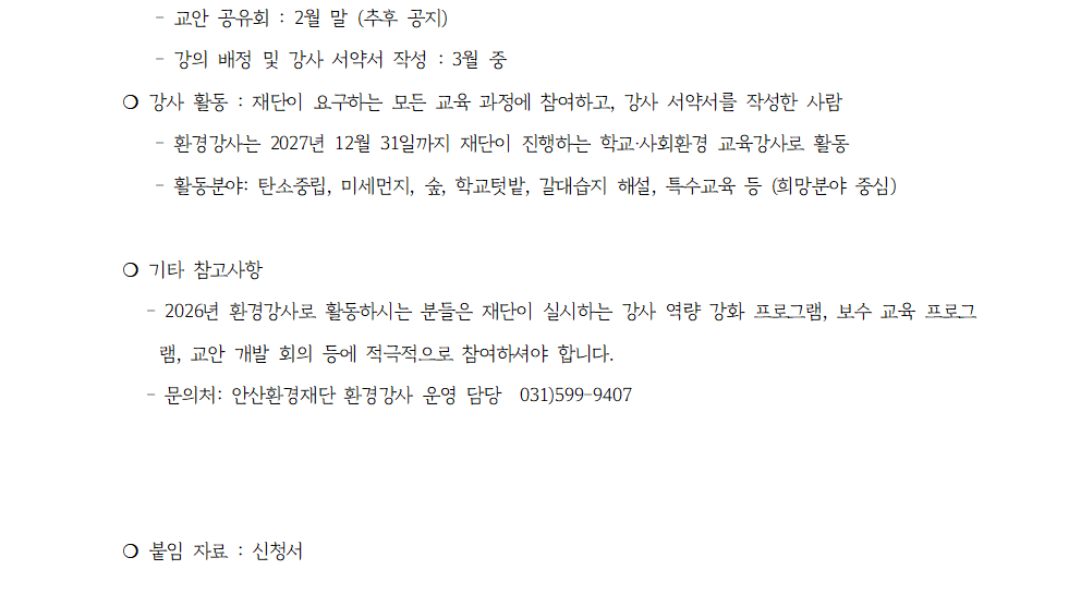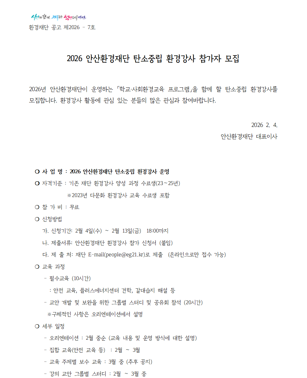 2026 안산환경재단 탄소중립 환경강사 모집
